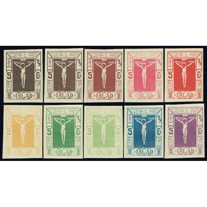 Contra el paro - Cristo de Murillo. Granada. Preciosa serie completa sin dentar. Rara.