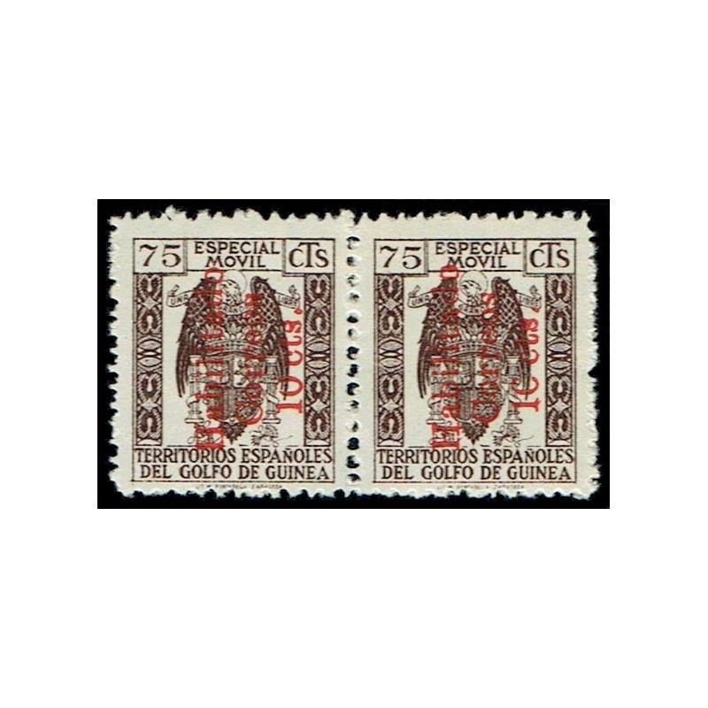 Emisión provisional. Sellos fiscales habilitados para Correos. Rara pareja horizontal presenta variedades de composición en el 1er sello con el "0" de "10 cts." roto en la parte superior izquierda y roto en forma de "C" en el 2do. No catalogadas.