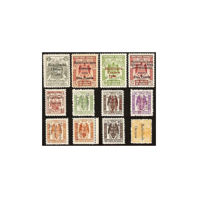 Emisión provisional. Sellos fiscales habilitados para Correos. Preciosa serie completa. Tirada de 1.000 ejemplares para ED. Guinea 259A y 259G/259H. Lujo.