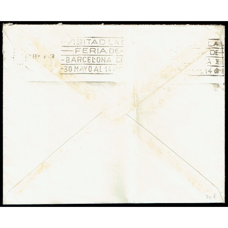 1936 Madrid-Barcelona. Sobre franqueado con 5c. y 25c. de la serie "Asociación de la Prensa". Matasellos de rodillo de origen y de llegada en el reverso. Raros los sellos de esta emisión en carta comercial.