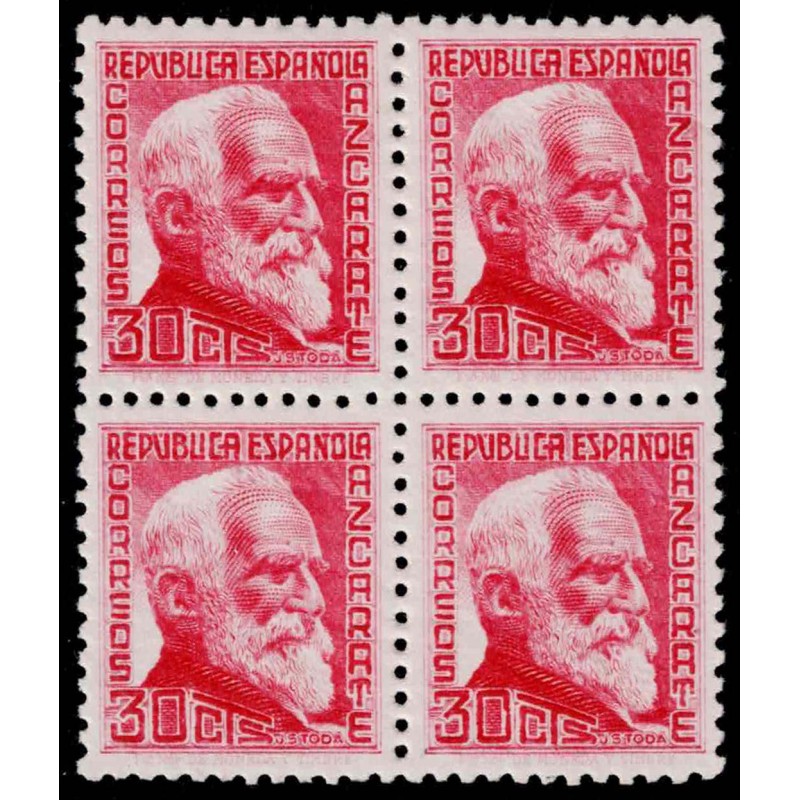 Personajes (II). Gumersindo de Azcárate. Fantástico bloque de 4 del 30 Céntimos rosa valor clave de la serie nuevo presenta magnífico centraje. Gran lujo.