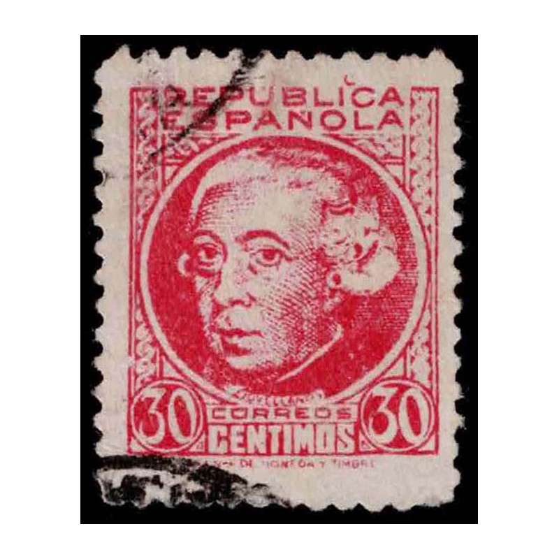 Personajes (II). Gaspar Melchor de Jovellanos. Muy raro falso postal del 30 Céntimos carmín usado con matasellos negro.