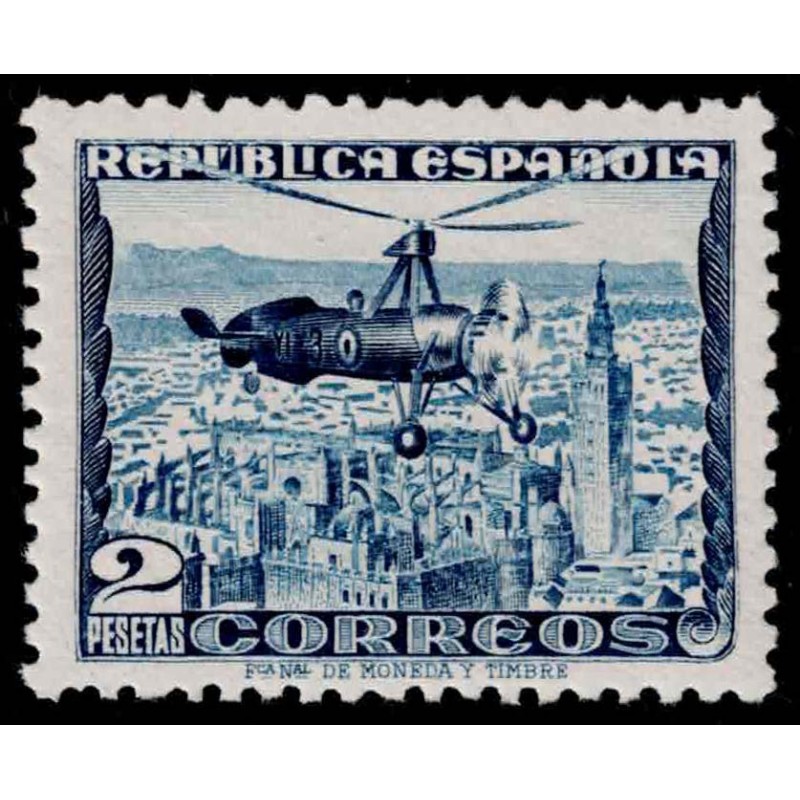 Autogiro de Juan de la Cierva. Precioso 2 Pesetas azul nuevo con casi invisible señal de fijaselllos presenta magnífico centraje. Gran lujo.