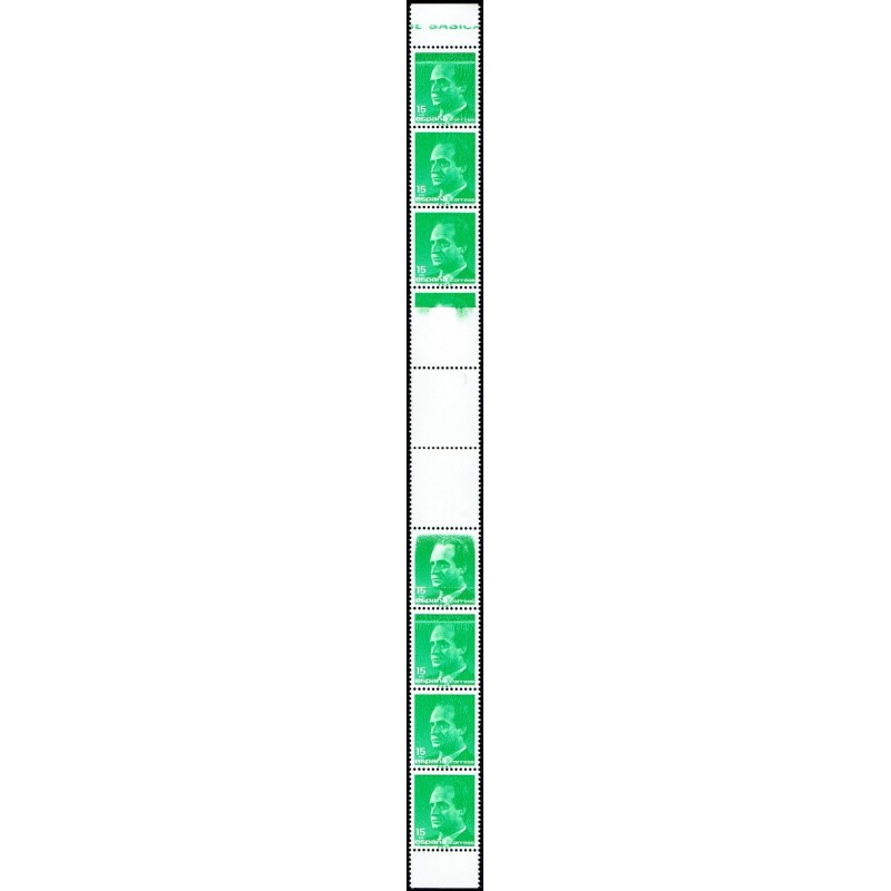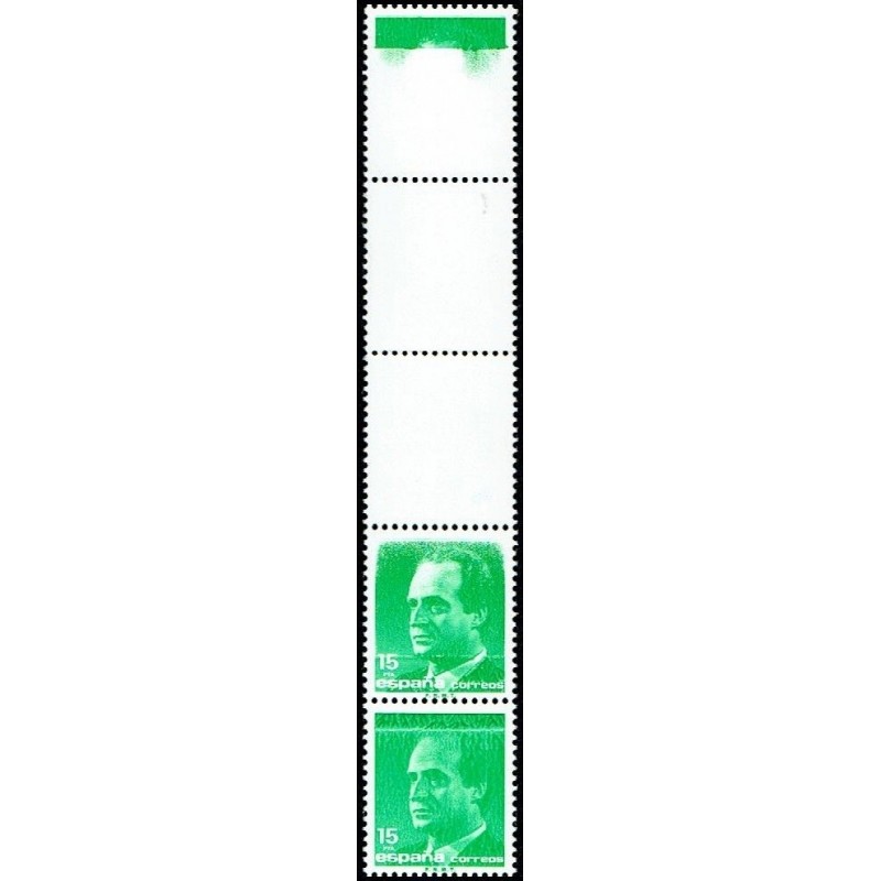 S.M. Don Juan Carlos I. Preciosa tira vertical de 10 presenta un conjunto de variedades de impresión diluidas, parciales, borrosas y en blanco. No catalogadas. Muy rara.