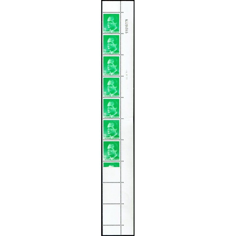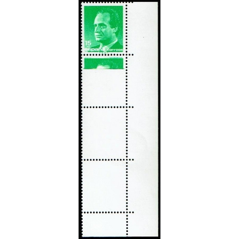 S.M. Don Juan Carlos I. Preciosa tira vertical de 10 presenta un conjunto de variedades de impresión diluidas, parciales y en blanco. No catalogadas. Rara.