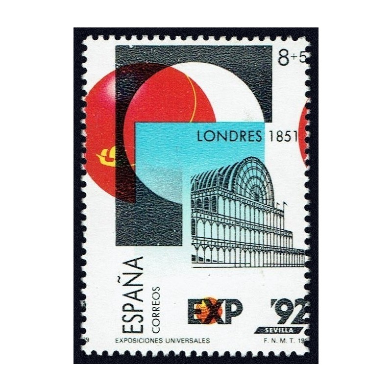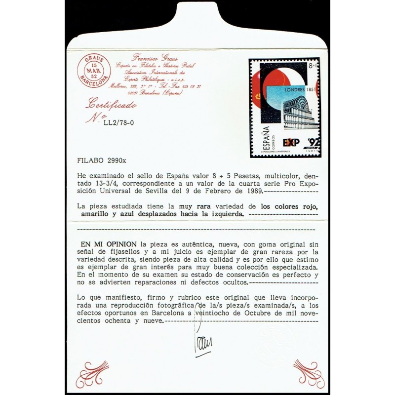 Exposición Universal de Sevilla EXPO'92. Preciosa variedad con el dentado vertical desplazado y con los colores rojo, amarillo y azul desplazados a la izquierda. Certificado Graus.