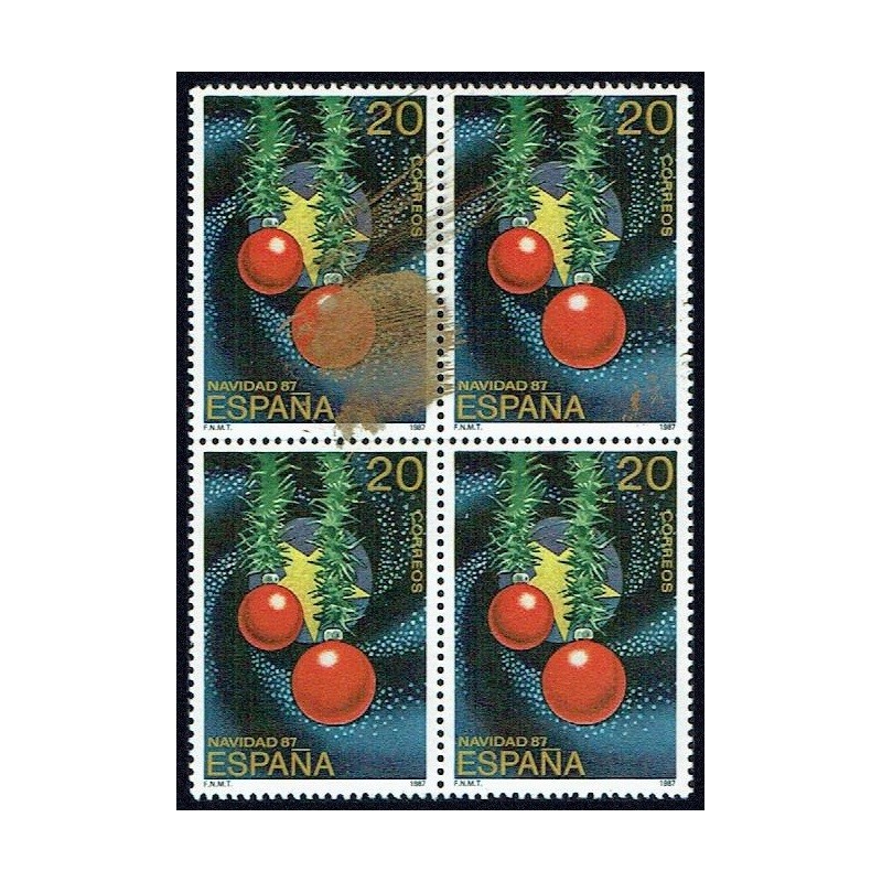 Navidad. Precioso bloque de 4 con un sello variedad por presentar una gran mancha de color oro. No catalogado. Raro.