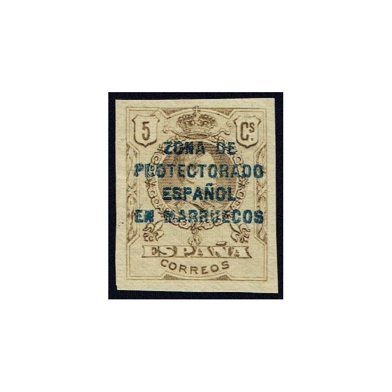 Sellos de España habilitados. Alfonso XIII. Medallón. Rarísimo error de color castaño oliva sin dentar presenta buenos márgenes. Lujo. Certificado C.E.M.