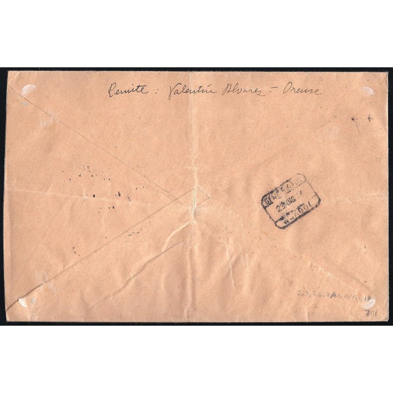 Sellos republicanos sobrecargados. Bonita carta certificada circulada de Orense a Burgos el 21 de Diciembre de 1936. Franqueada con 12 valores de la primera serie, dos 10c. ED. Cruzada contra el Frío 1 y 3, un 10c. benéfico provincial de Orense y un 5c. ED. Beneficencia 1. Matasellada con fechadores de origen y de llegada. Marca de censura militar. Rara.