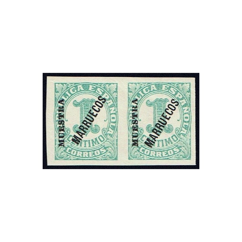 Sellos de España habilitados. Preciosa pareja horizontal con habilitación "MUESTRA" vertical.