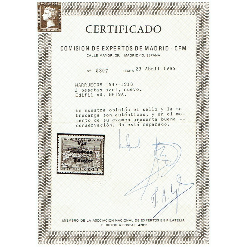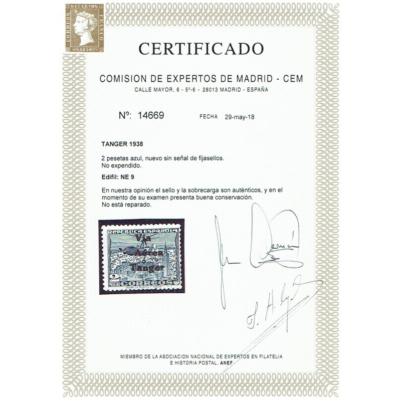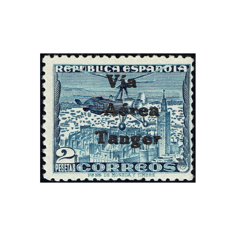 Sellos de España habilitados. Correo aéreo. Rarísimo ejemplar no expendido con marquilla "FARACHE TANGER". Certificados C.E.M.