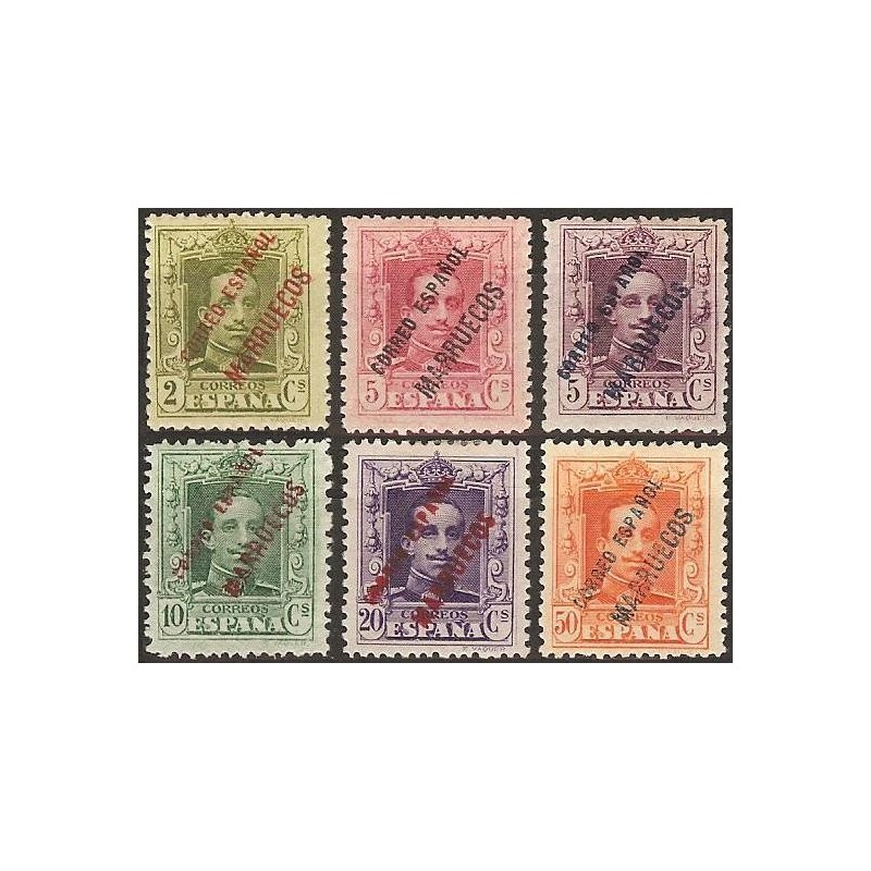 Sellos de España habilitados. Alfonso XIII. Vaquer. Preciosa serie completa habilitada con sobrecarga "a" presenta señal de fijasellos. Lujo.