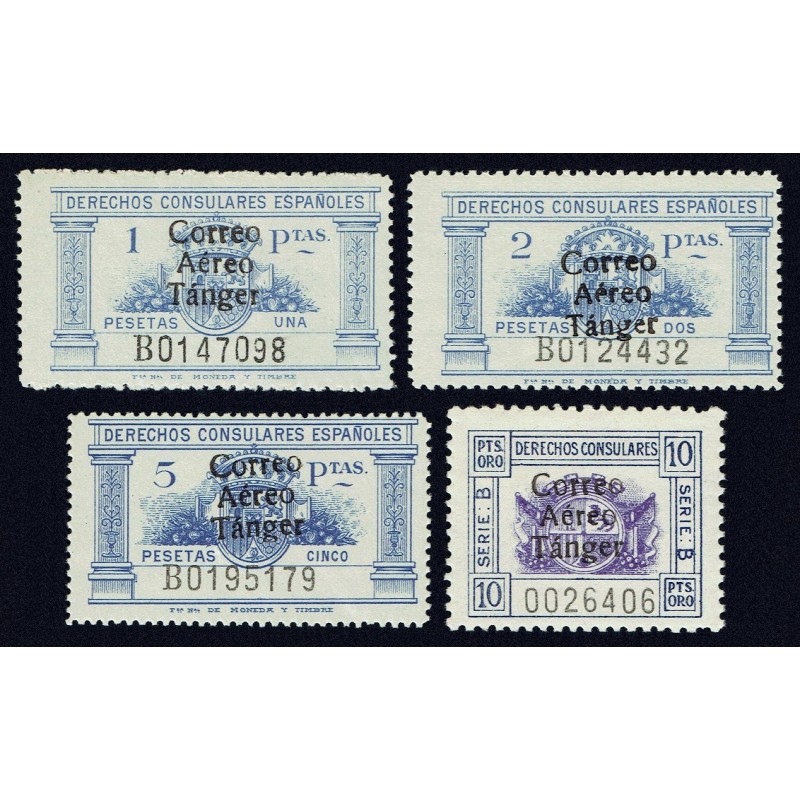 Sellos de derechos consulares habilitados. Correo aéreo. Preciosa serie completa.