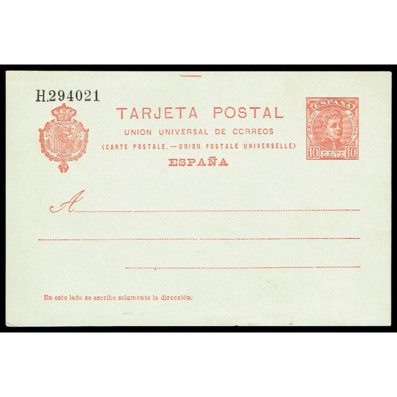 Alfonso XIII. Tipo Cadete. 7ª serie. Tarjetas para los Países de la Unión Postal Universal. 10c. rojo anaranjado. Precioso entero.